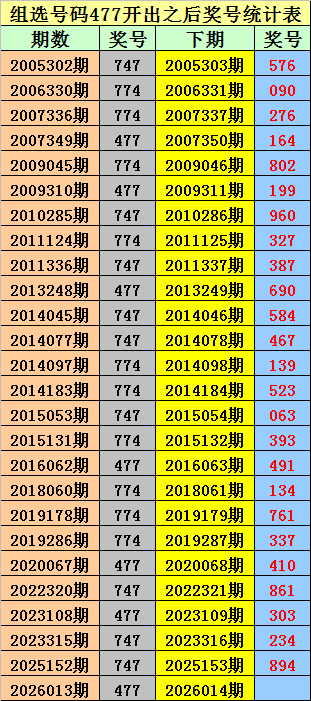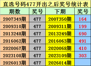 上期回顾:排列三第2026013期开奖号码为477,历史上组选出现26次,直选出现7次。