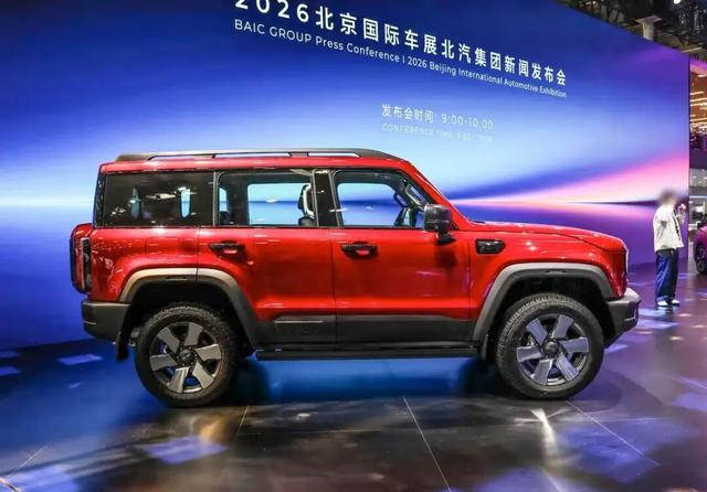 来到车身侧面,比较高大,车身顶部也是配备行李架,车窗使用悬浮式车窗,门把手为传统式门把手,新车配备多幅式轮毂,新车拥有比较高的离地间隙,整体的通过能力比较强。